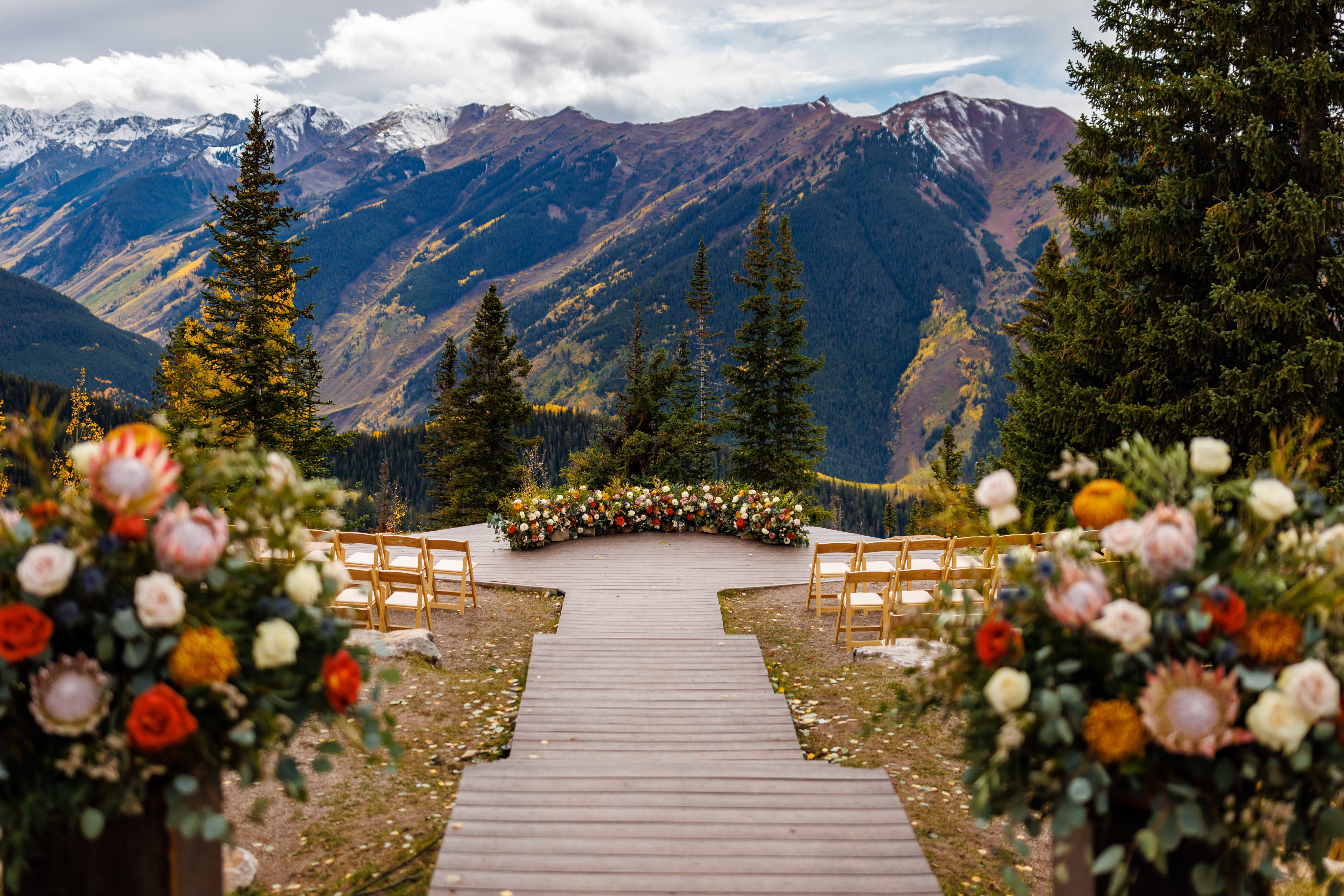The only way to access the Aspen Wedding Deck is by riding the Silver Queen Gondola, which happens to be the longest single stage gondola in the world. The 2.5 mile ride up Aspen Mountain takes around 15 minutes, but puts you exactly 11,212 feet above sea level. This is quite the change from 8,000 feet in the town of Aspen below. Be sure to help out-of-state guests by making them aware of altitude sickness. A Acetazolamide (Diamox) tablet can go a long way for anyone who struggles with it.