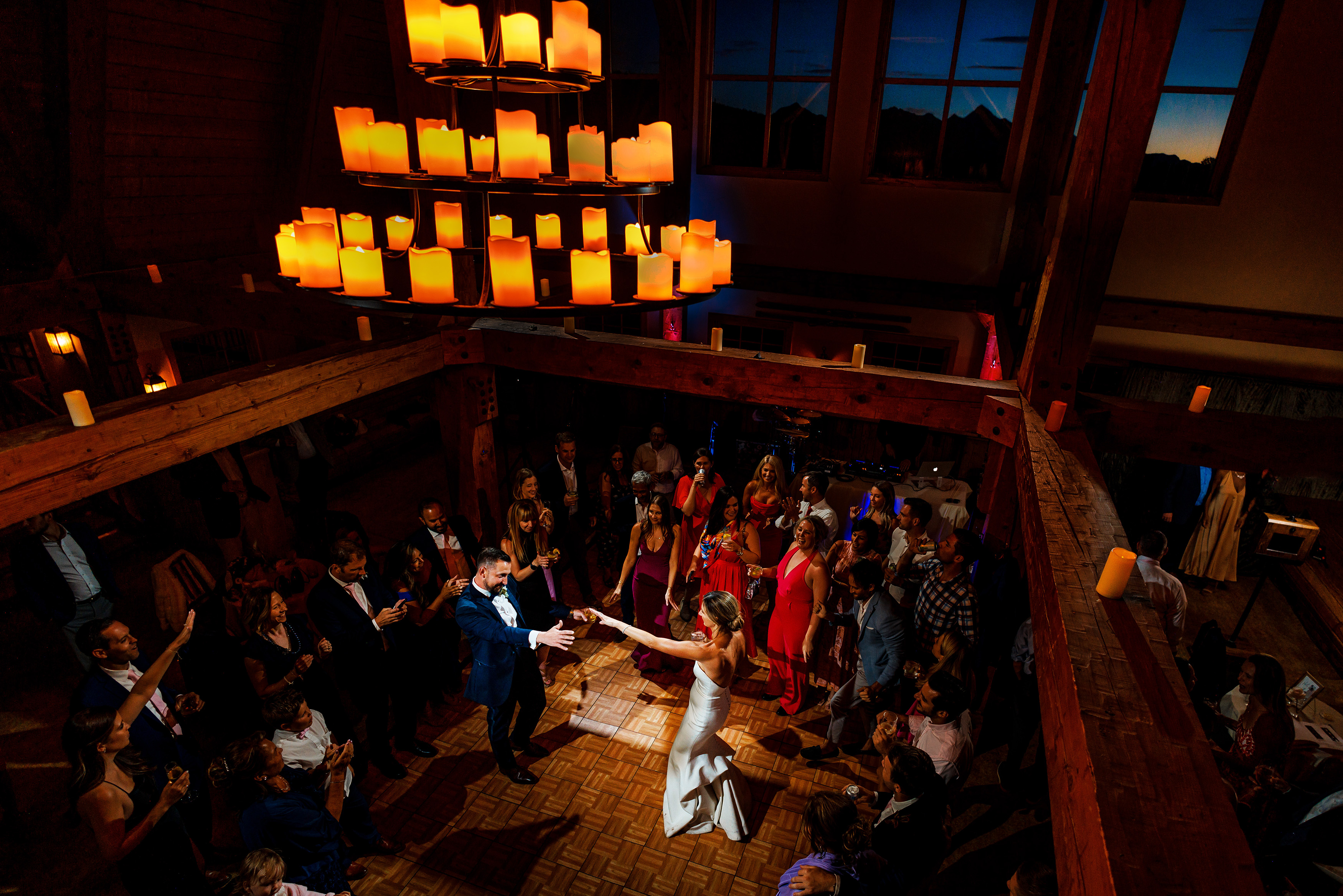 It does have on-site ceremony location options available, but most of our couples opt for a San Sophia Wedding and then finish up with a reception at Gorrono Ranch. The actual location of the ranch is mid-mountain, meaning that shuttles are involved in getting your guests to the site. The road is well maintained and just a quick ride from the overlook or Mountain Village below.