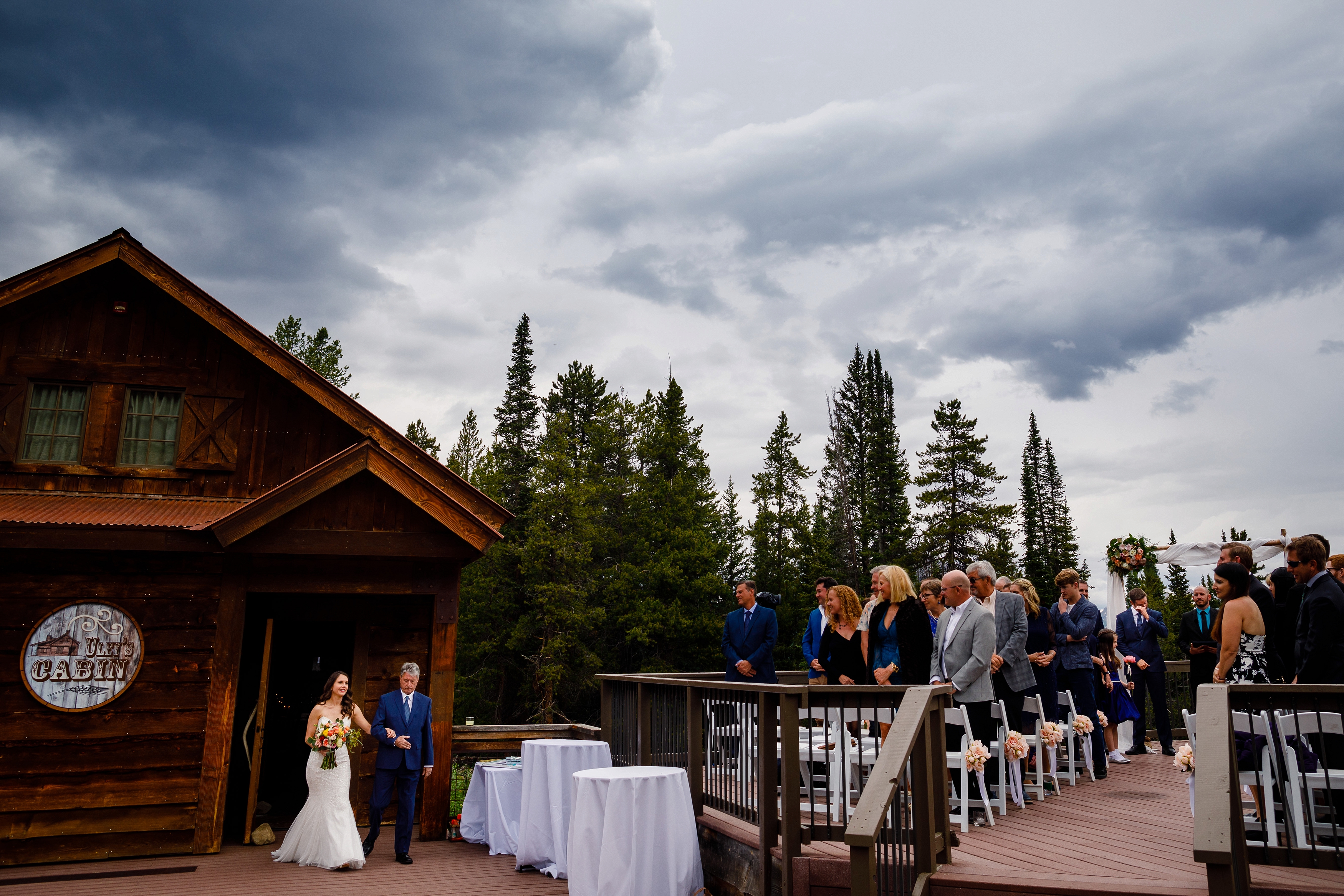 The wedding ceremony deck sits just outside the cabin and provides a beautiful look back on the West Elk Mountains. The deck can be a little tight if you are maxing out the guest count, but the views worth it.